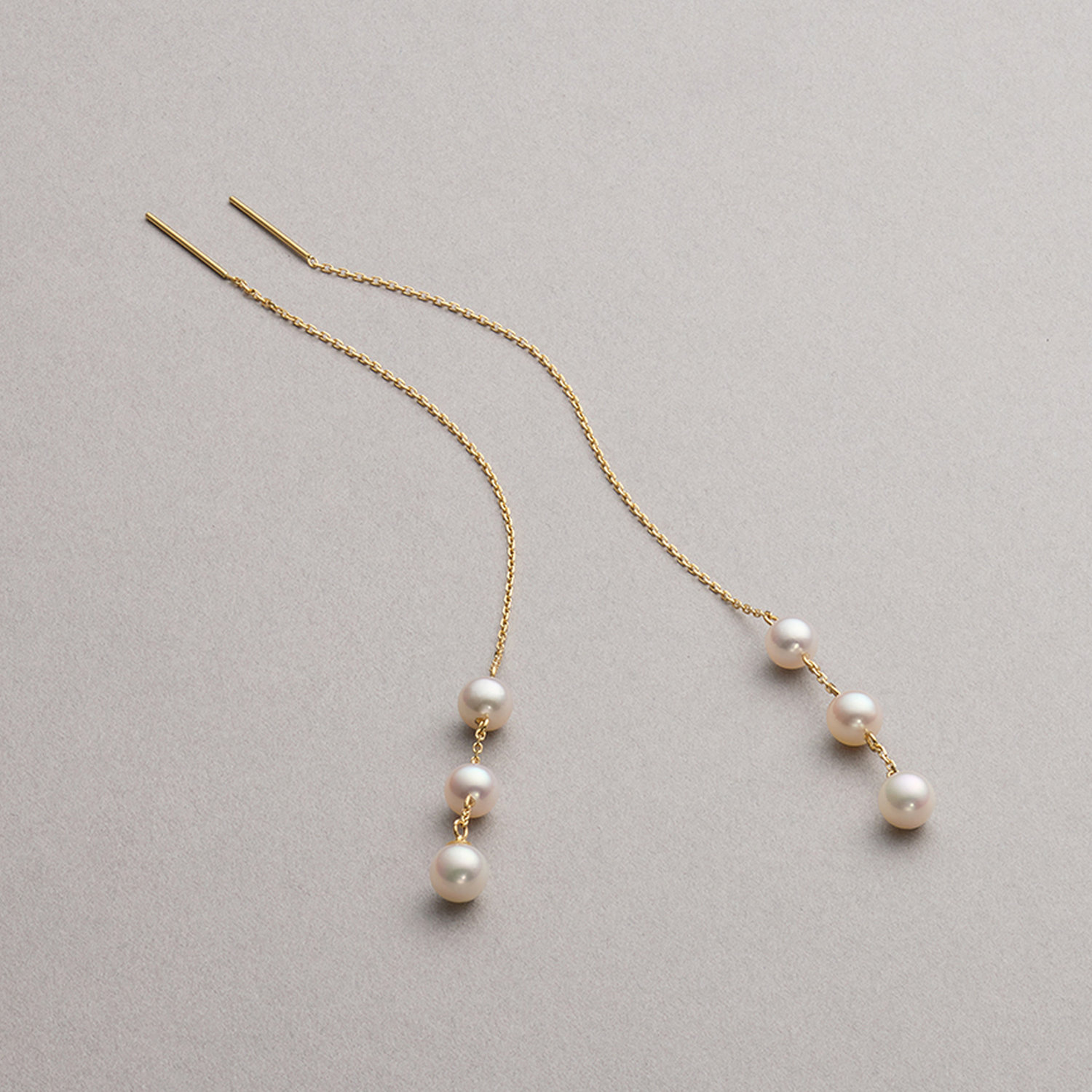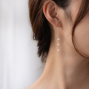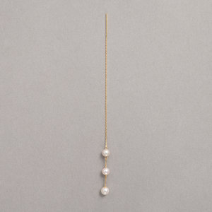 ◎ネット限定品キラキラと輝くゴールドと3個のアコヤパールが連なるロングピアスは、ふとした仕草で揺れるパールに思わず目を引く華やかさ。さらに女性らしさが増し、女心をくすぐるデザインに仕上げました。着けるだけでレディなスタイルになるパールジュエリーはかわいいだけではなく、ラグジュアリーなムードも演出してくれます。ゴールドチェーンをピアスホールに通し、お好きな長さで調整ができるアメリカンタイプ仕様のため、キャッチレスで忙しいときでもさらりと着けられる利便性にも優れたアイテムです。