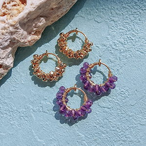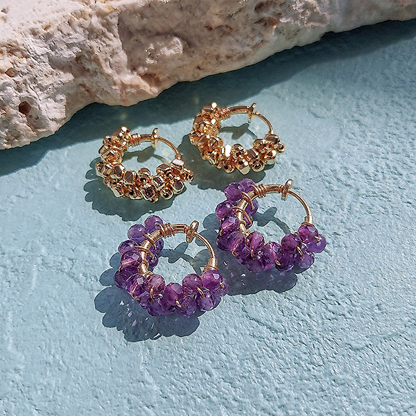 ●素材:[金色] 真鍮(金メッキ)ビーズ/フープ・K14ゴールドフィルドワイヤー、[パープル]アメジスト・真鍮(金メッキ)フープ・K14ゴールドフィルドワイヤー