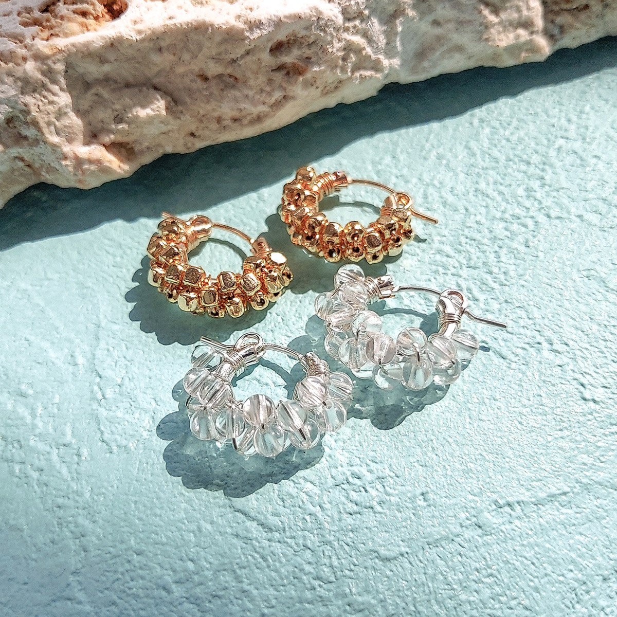 ●素材:[金色] 真鍮(金メッキ)・K14ゴールドフィルドピアス/ワイヤー、[クリア]クリスタルクォーツ(水晶)・SV925シルバーフィルドピアス/ワイヤー