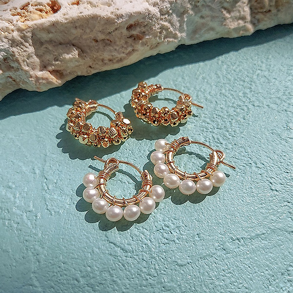 ●素材:[金色] 真鍮(金メッキ)・K14ゴールドフィルドピアス/ワイヤー、[ホワイト]淡水真珠・K14ゴールドフィルドピアス/ワイヤー