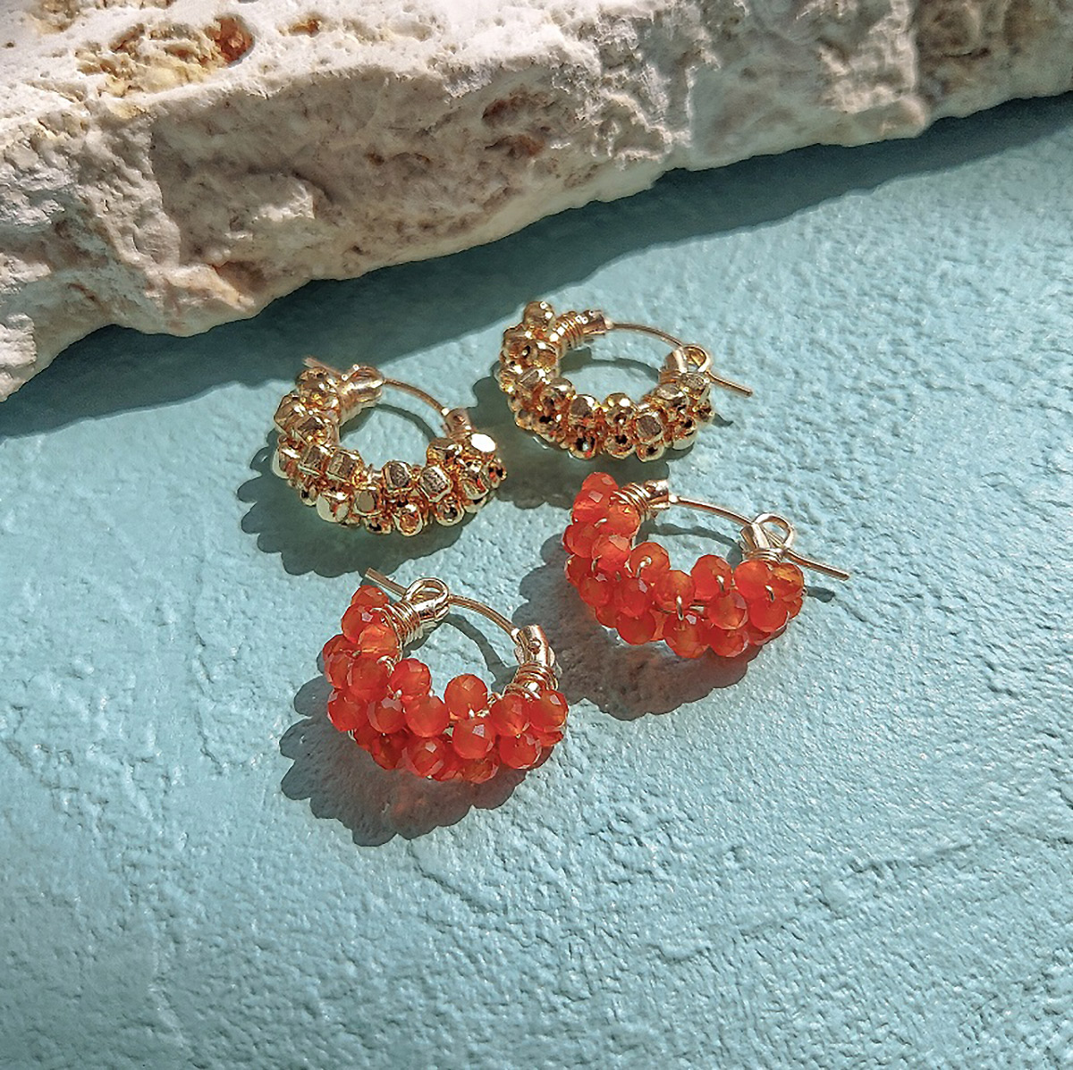 ●素材:[金色] 真鍮(金メッキ)・K14ゴールドフィルドピアス/ワイヤー、[オレンジ]カーネリアン・K14ゴールドフィルドピアス/ワイヤー
