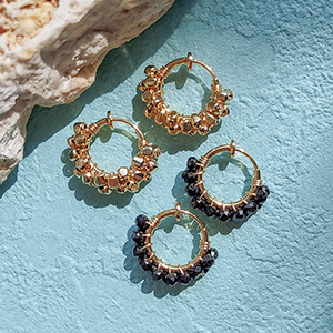 ●素材:[金色] 真鍮(金メッキ)ビーズ/フープ・K14ゴールドフィルドワイヤー、[ブラック]ブラックスピネル・真鍮(金メッキ)フープ・K14ゴールドフィルドワイヤー