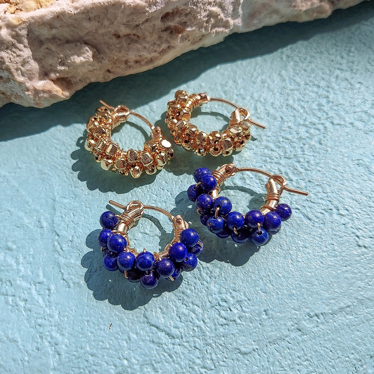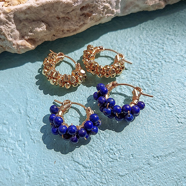 ●素材:[金色] 真鍮(金メッキ)・K14ゴールドフィルドピアス/ワイヤー、[ネイビー]ラピスラズリ・・K14ゴールドフィルドピアス/ワイヤー