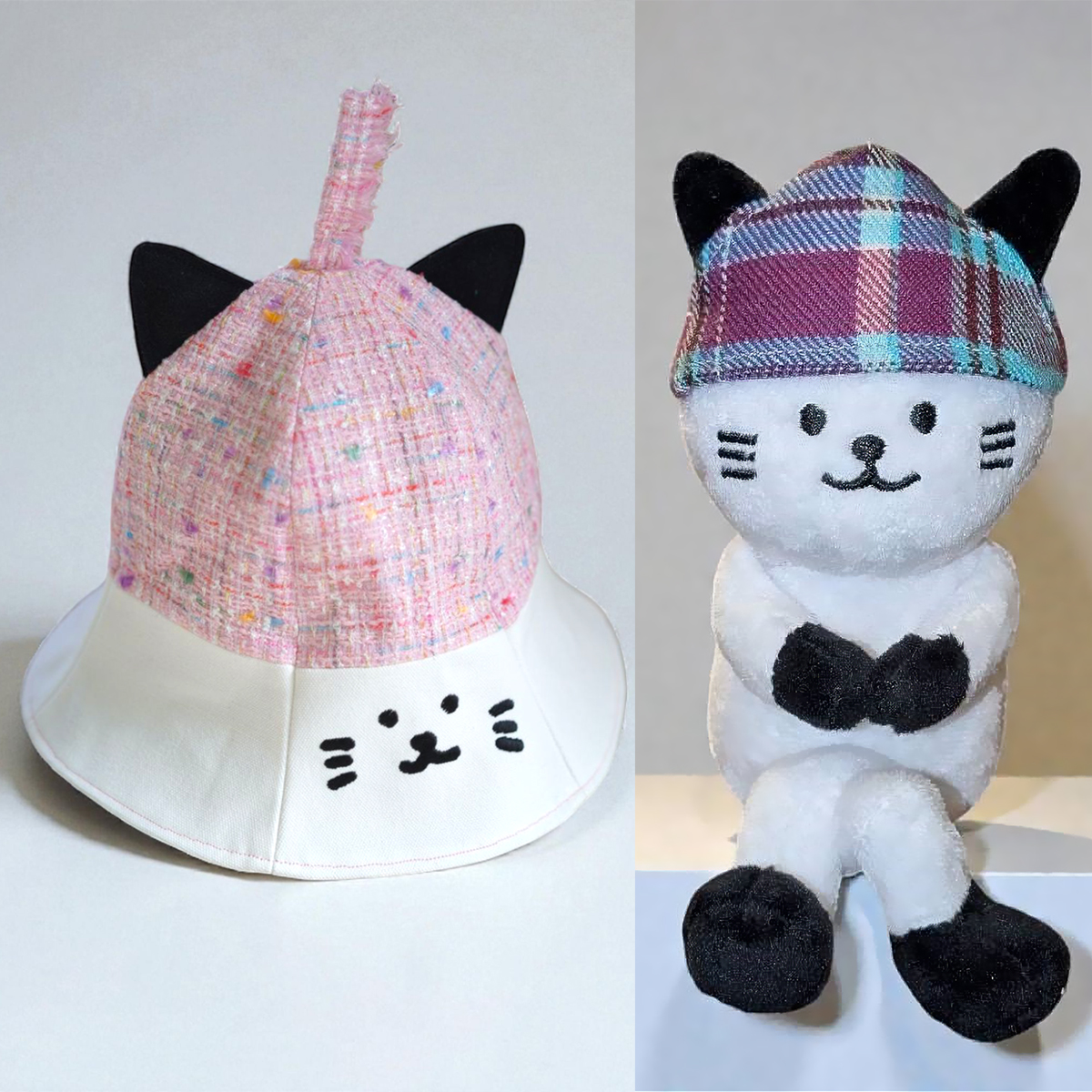 ツイードが可愛い限定サウニャフェイスハット。立体おみみがチャームポイント。ハンドメイドで作ったサウナハット付き限定ぬいぐるみとセットになります。※ぬいぐるみのハット部分の素材・カラーはランダムになります。