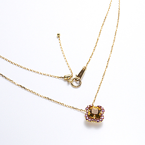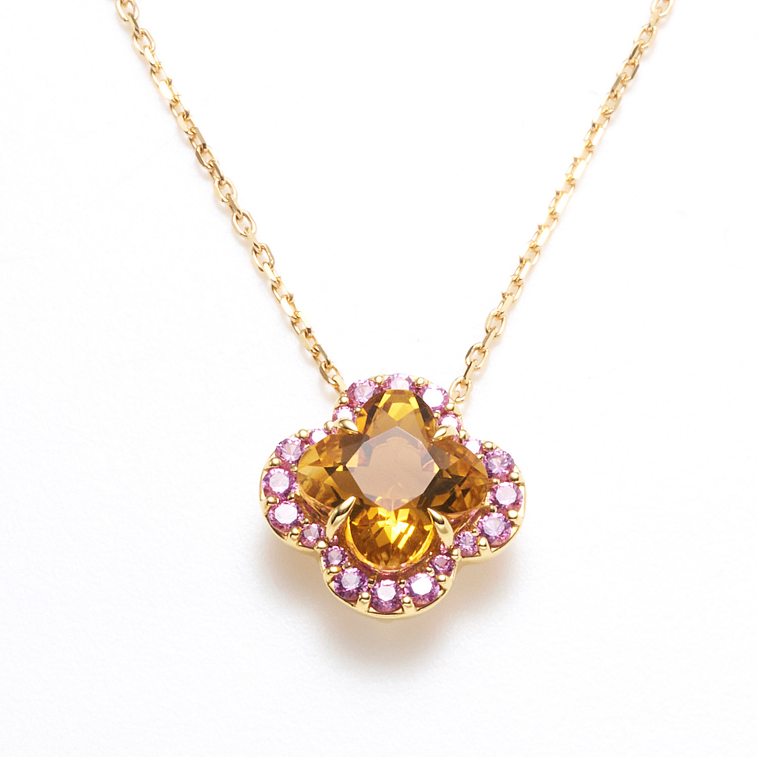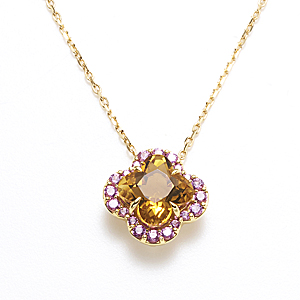 ●サイズ:シトリン 1.53ct ピンクサフィア 計0.26ct、スライド式チェーン45cm ペンダント直径約1cm