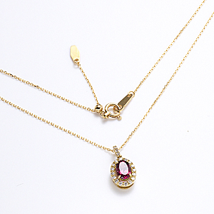 ●サイズ:ガーネット 0.63ct、ダイヤモンド 計0.13ct、45cmスライド式チェーン ペンダント直径約8mm