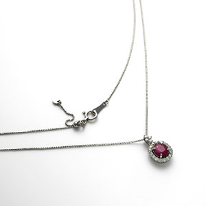 ●サイズ:ルビー 1.01ct ダイヤモンド、計0.20ct 45cmスライド式チェーン 縦 約1.3cm(バチカン含む)