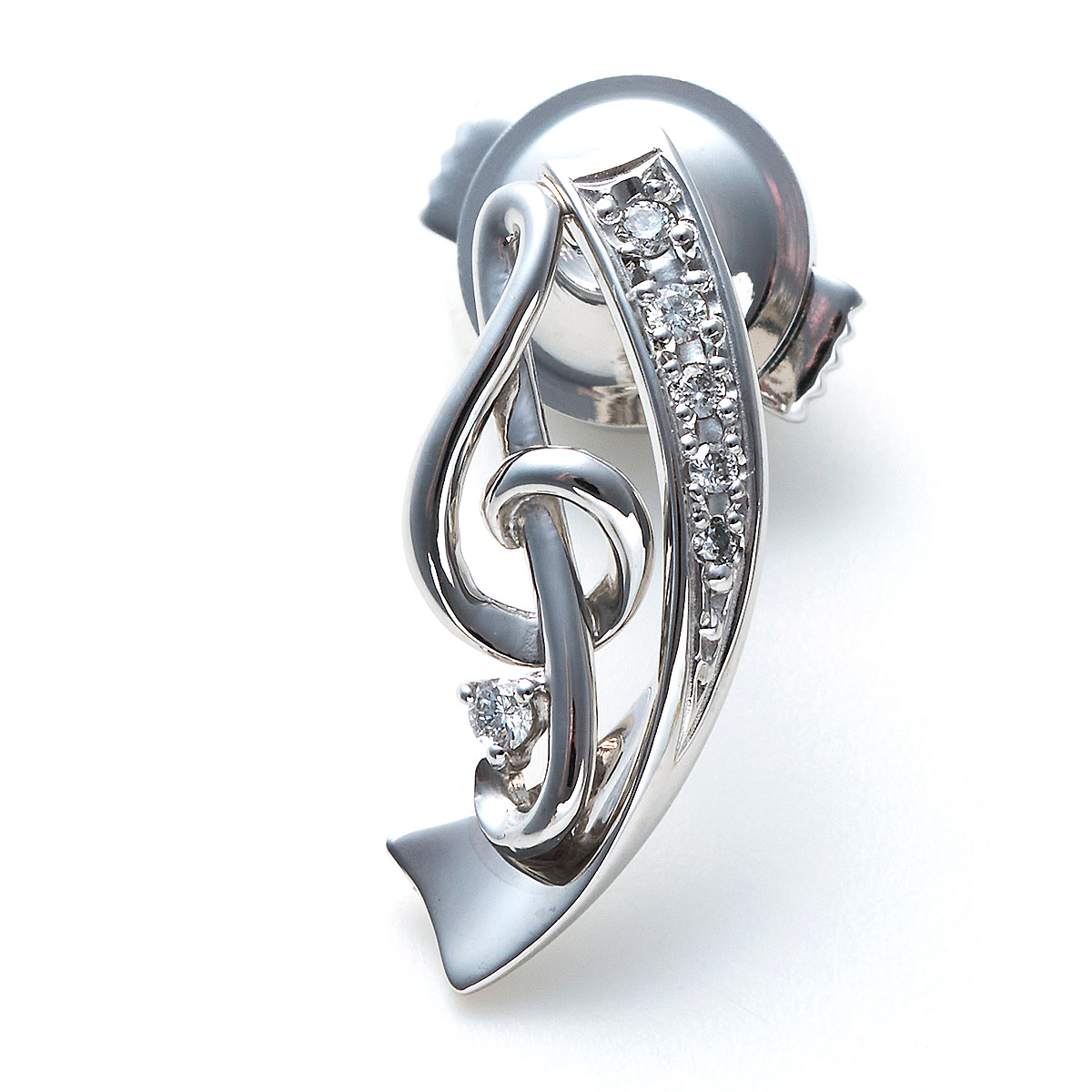 ブローチはジャケットやコートの襟元はもちろん、ストールやバック、帽子のワンポイントとして楽しめるコーディネートの幅を広げてくれるアイテムです。音符にダイヤモンドをあしらった可愛いブローチです。