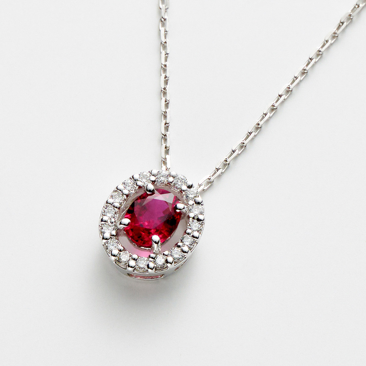 ●サイズ:ルビー 0.37ct、ダイヤモンド 計0.10ct 全長45cmスライド式チェーン 鑑別書付き