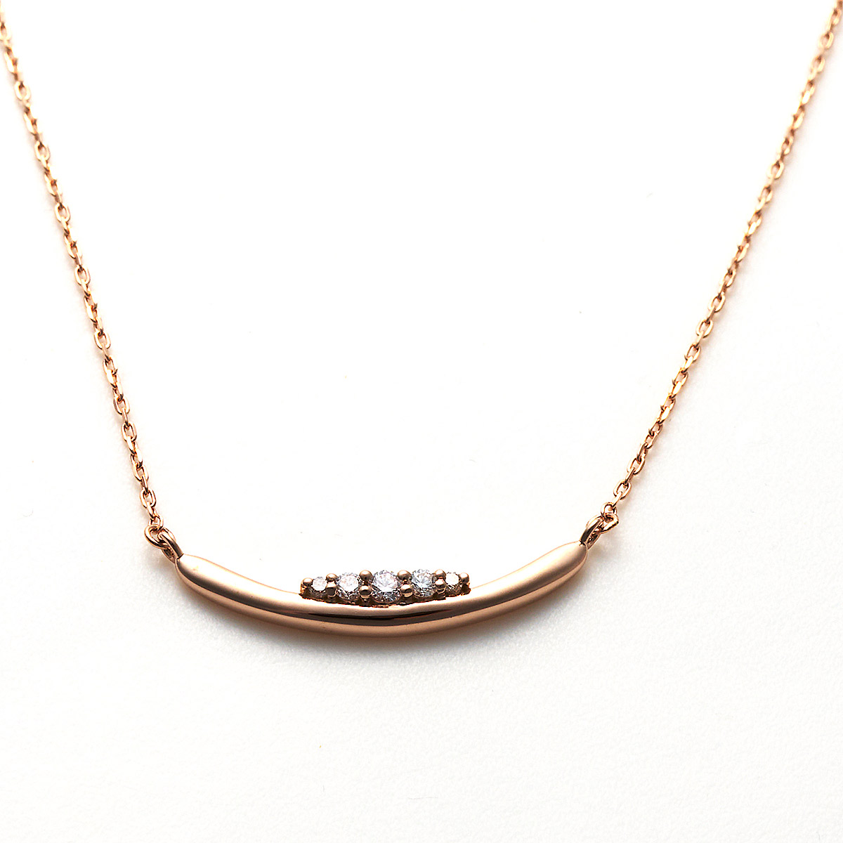 18金ピンクゴールドの華奢なチェーンに、緩やかなカーブを描くバータイプのトップをあしらったネックレス。シンプルだからこそ、永く愛せるネックスレスです。