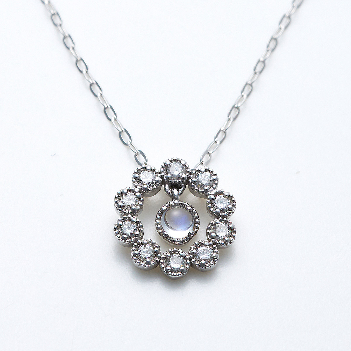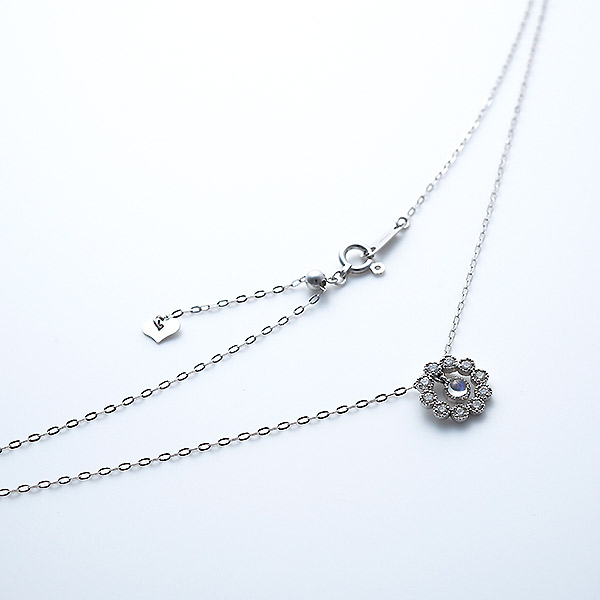 ●サイズ:ラブラドライト 0.07ct ダイヤモンド 合計0.13ct トップ 直径約9mm、45cmスライド式チェーン