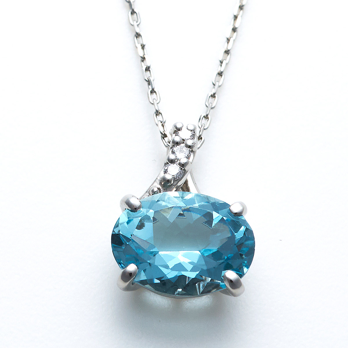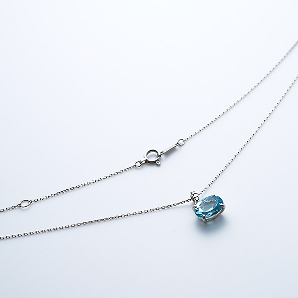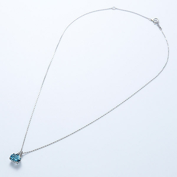 ●サイズ:アクアマリン 1.11ct ダイヤモンド 計0.02ct、全長40cmチェーン