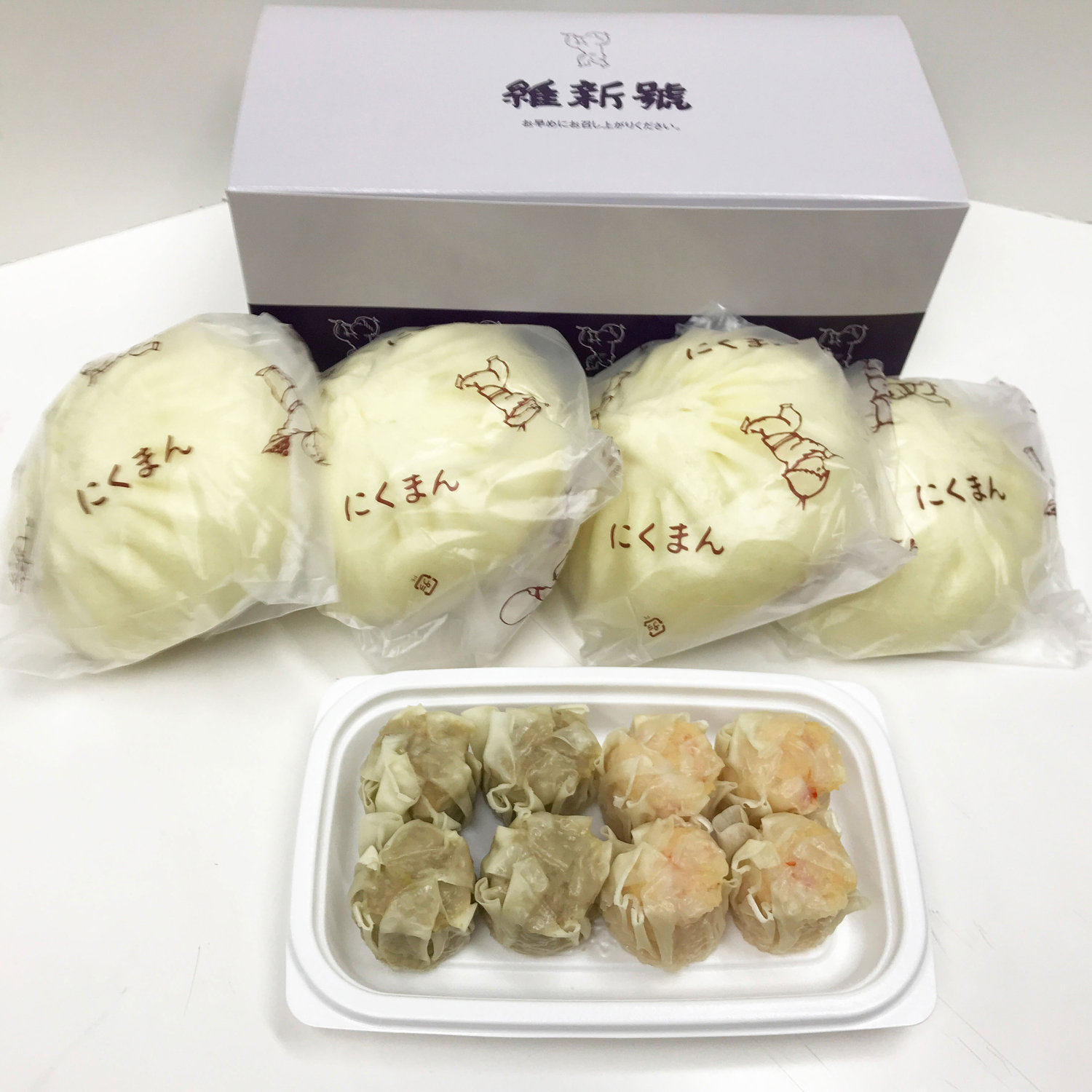 ●内容:肉まん×4、シューマイ・かにえびシューマイ各4粒入×1