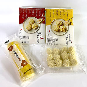 ●内容:豆腐しゅうまい5個入、かにしゅうまい5個入、ひとくち豆腐しゅうまい12個入、湯葉揚げ1本