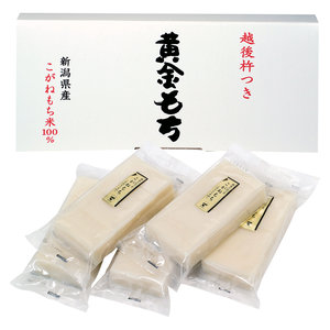 新潟県産こがねもち米を100%使用し、丁寧に搗き上げたコシが強く、滑らかな食感をもつ風味豊かな切り餅です。360g(8枚)のお餅が5袋入っています。