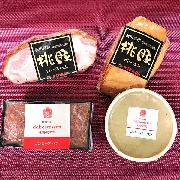 ●内容:桃豚ロースハムブロック300g、桃豚ベーコン300g、コンビーフ180g、レバーペースト140g