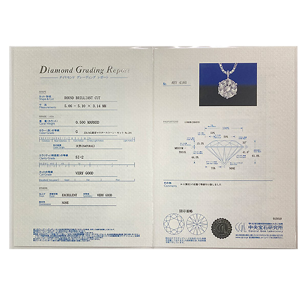 ●サイズ:ダイヤモンド 0.5ct G-SI2-VG
