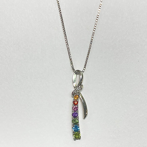【さっぽろ店からの発送】≪東急タイム・宝石売場≫Pt色石マルチカラーペンダントネックレス