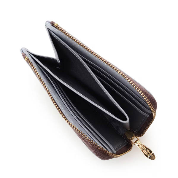 通常の2つ折り財布よりもスリムで、女性の手にもなじむサイズ感。革の味を楽しんでいただけるよう、デザインはシンプルに仕上げました。豊富なカラーバリエーションが嬉しいポイント。小銭入れは取り出しやすいマチ付き。お札は二つ折りで収納可能。