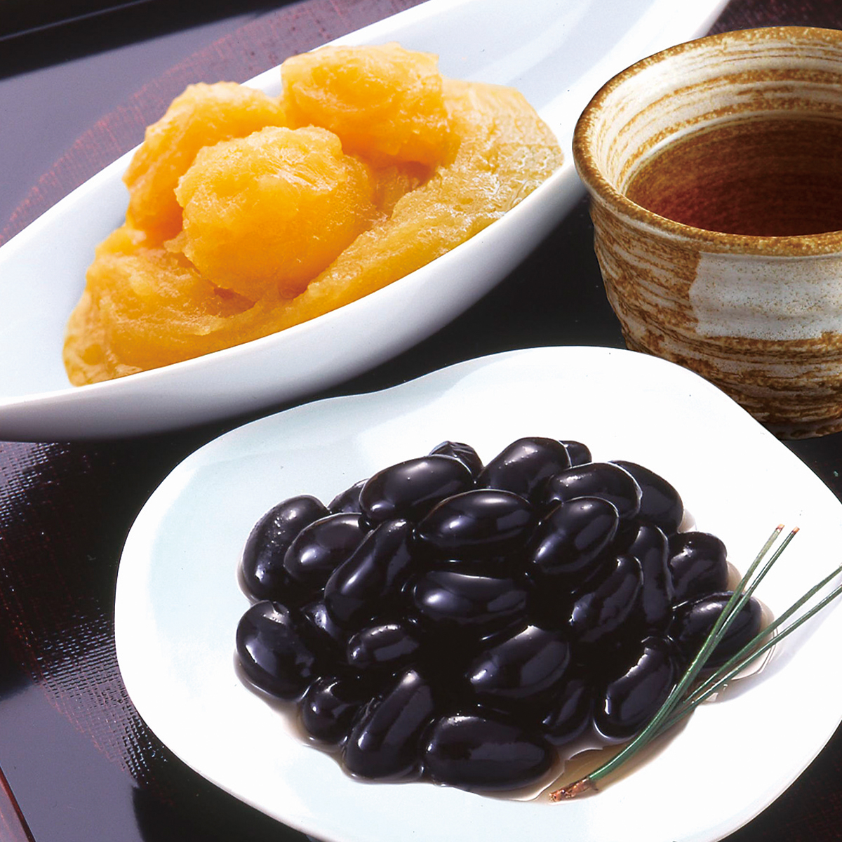 丹波地方特産の丹波黒大豆を使用した煮豆と国産栗を使用した栗きんとんの詰合せです。