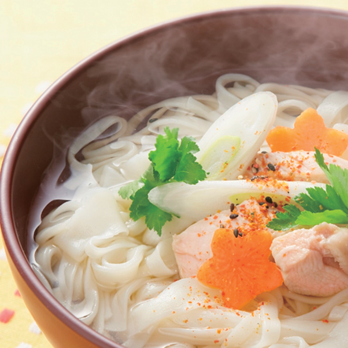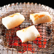 稲庭町で一番大きい自社工場のみで4日間の熟成工程で造り上げる手延べうどん。竿に掛けて延ばした一番端の部分で麺の幅と厚さの違いが独特の食感を楽しめます。