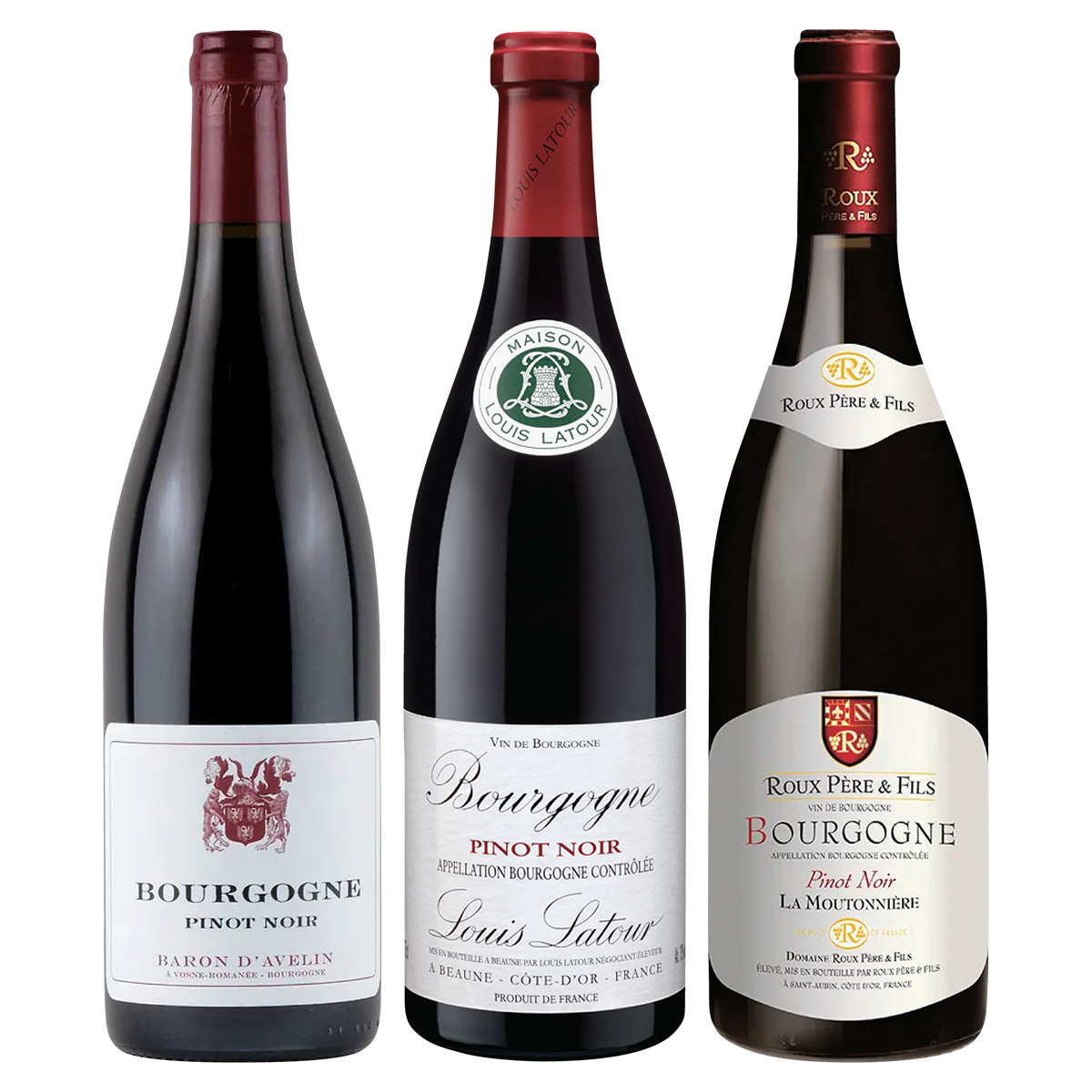 ●[フランス]〈バロン ダヴラン〉ブルゴーニュ ピノ ノワール、〈ルイ ラトゥール〉ブルゴーニュ ピノ ノワール、〈ドメーヌ ルー ペール エ フィス〉ブルゴーニュ ピノ ノワール ラ ムートニエール