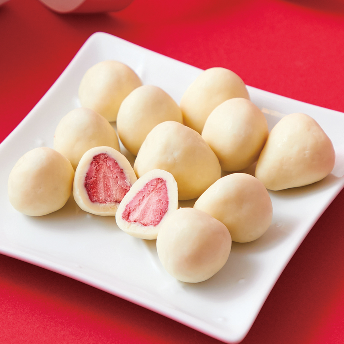 ホワイトチョコにいちごをまるごと閉じ込めました。甘みと酸味のバランスが絶妙なイチゴだけを旬の美味しさそのままにフリーズドライ濃厚な高品質ホワイトチョコで贅沢にたっぷりコーティングしました。