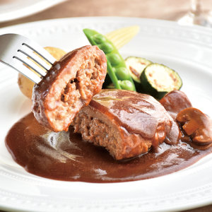 ソテーオニオンのうま味、トマトペーストの程よい酸味、バターのコクと赤ワインの風味、それぞれが調和したデミグラスソースは、ハンバーグの味を引き立てます。