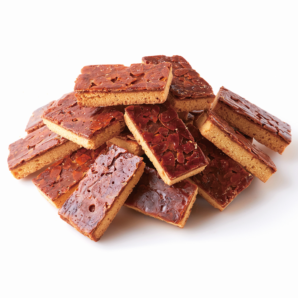 カリッとサクサク生地の2層。ほろ苦く甘すぎない、表面はカリッと中はサクサク。アーモンドはローストして香ばしい状態を保ち、時間をかけてじっくり2度焼きすることで、表面はカリッと中はサクサクなキャラメルフロランタンに仕上げています。また、キャラメルがほろ苦く甘くなりすぎないように作られています。焼きムラ、端っこ、欠け、見た目は訳ありですが、味は正規品と同じ。(正規品と訳あり品混載してあります。)