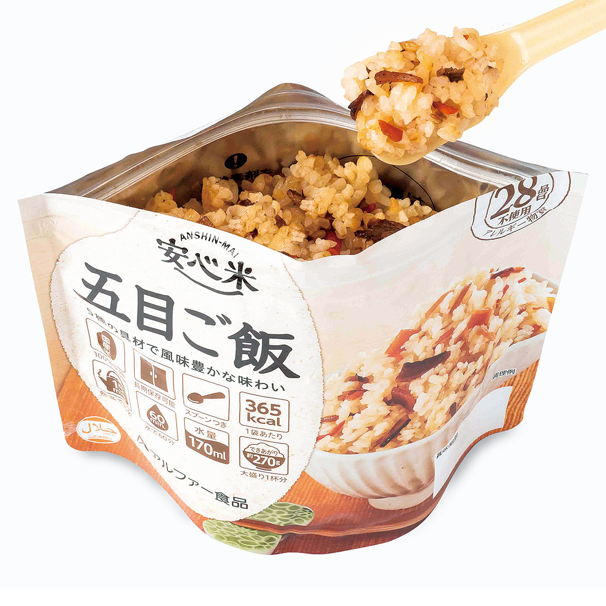 保存期間は5年と長く、特定原材料等28品目は不使用の食物アレルギーに配慮した長期保存食です。スプーンも入っているので食器の準備も必要ありません。