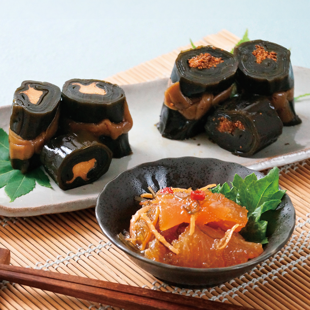 縁起物の昆布巻と数の子松前漬を詰合せにしました。さけ・数の子の2種類のやわらかな昆布巻は、少し甘めの味わいに仕上げました。数の子松前漬には、プチプチ食感が楽しめる大ぶりの数の子がたっぷり入っています。年末年始に欠かせない組み合わせ。