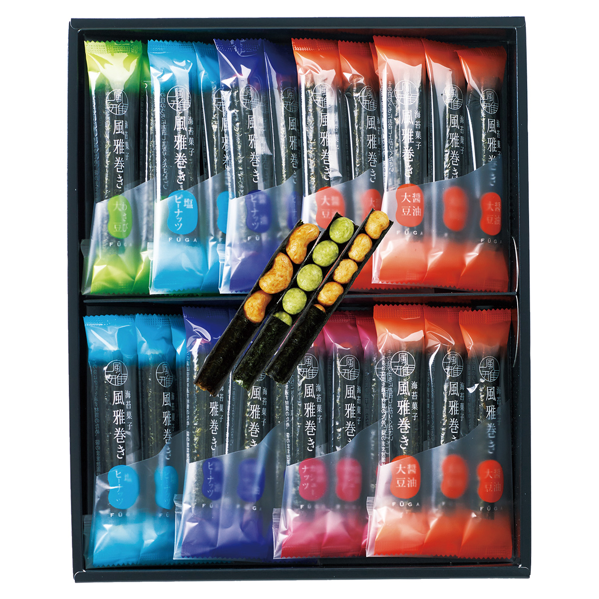 ●内容:醤油大豆×9、醤油ピーナッツ・塩ピーナッツ 各6、わさび大豆・醤油カシューナッツ 各3