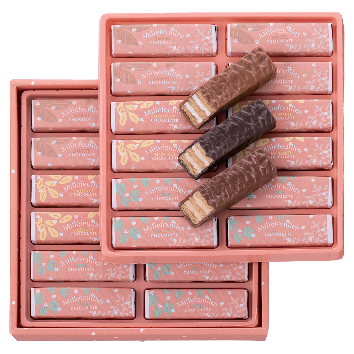 ●内容:ミルクチョコレート・スイートチョコレート・ヘーゼルナッツチョコレート 各8
