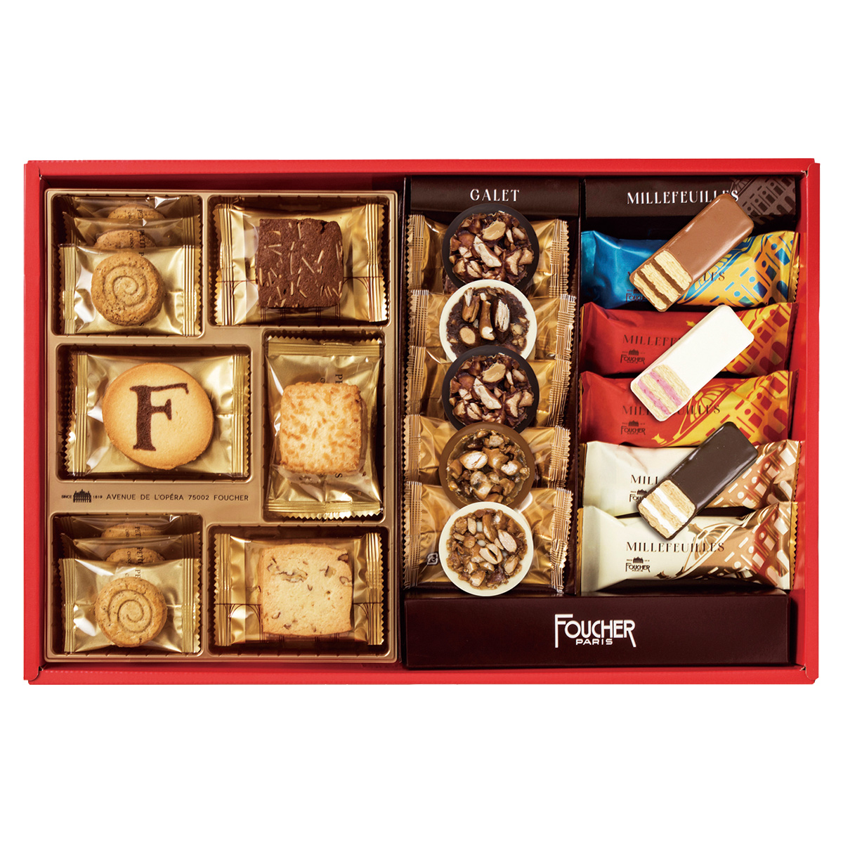 ●内容:プチフール・セック×14、ガレ×5、ミルフィーユ(バニラ・ストロベリー 各2、バターショコラ)