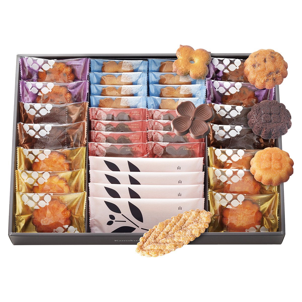 ●内容:かまくらボーロ×8、パイ(山桜)×4、手毬花(プレーン×6、ショコラ・ラムレーズン 各4)、あじさいチョコレート(ミルク)×8
