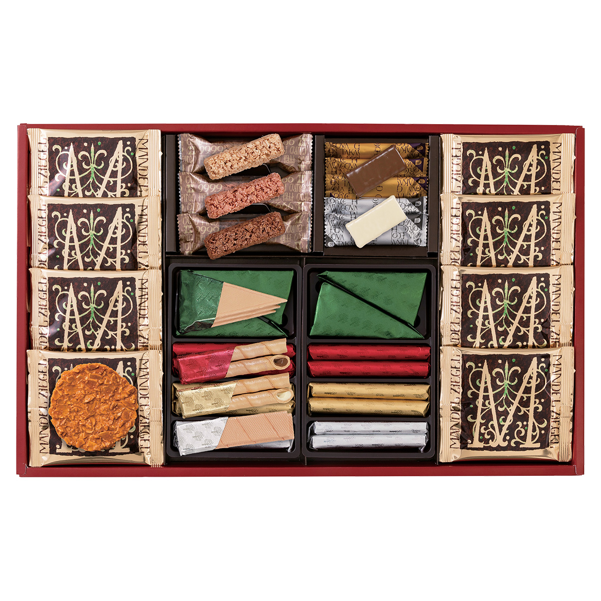 ●内容:エコルセ×36、マンデルチーゲル×8、ショコラエコルセ(ミルクチョコ×3、ホワイトチョコ×2)、米粉クランチ(ミルクチョコ・ホワイトチョコ・ラズベリーチョコ)