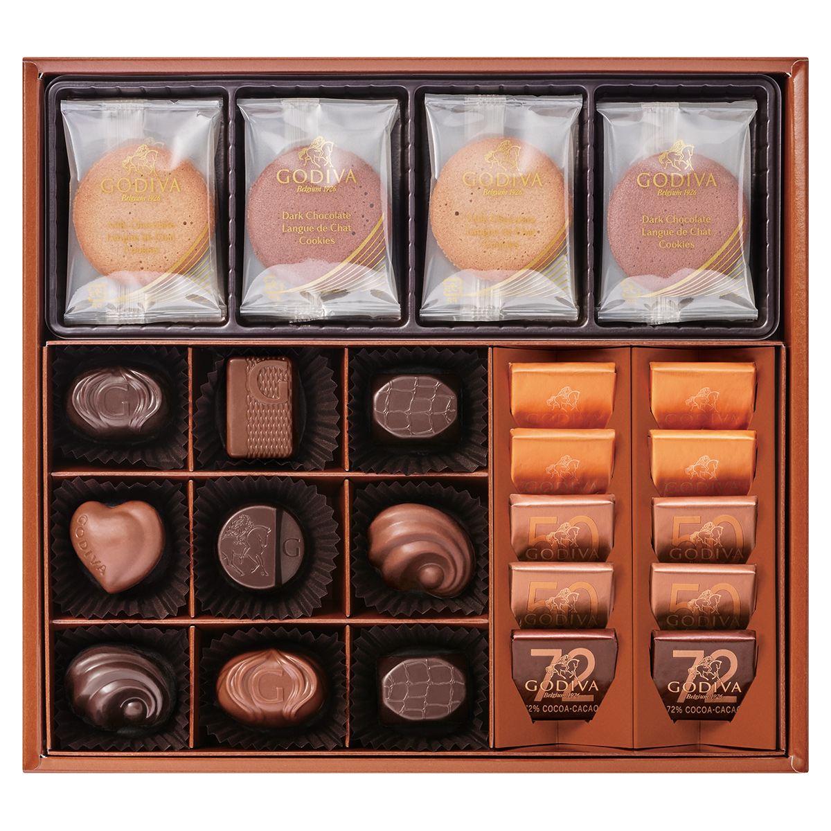 定番クッキーと伝統のチョコレート。1箱で≪ゴディバ≫の多彩なおいしさが楽しめます。