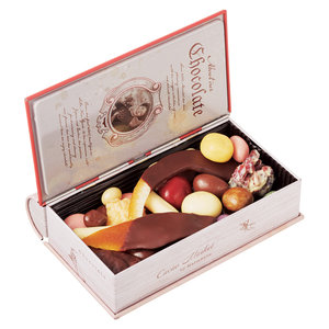開ける前からときめく、キュートなギフト缶。絵本のようなギフト缶を開けるとカラフルなチョコレートが。チョコレートボールと相性のよいフルーツディップが溶け合って絶妙。