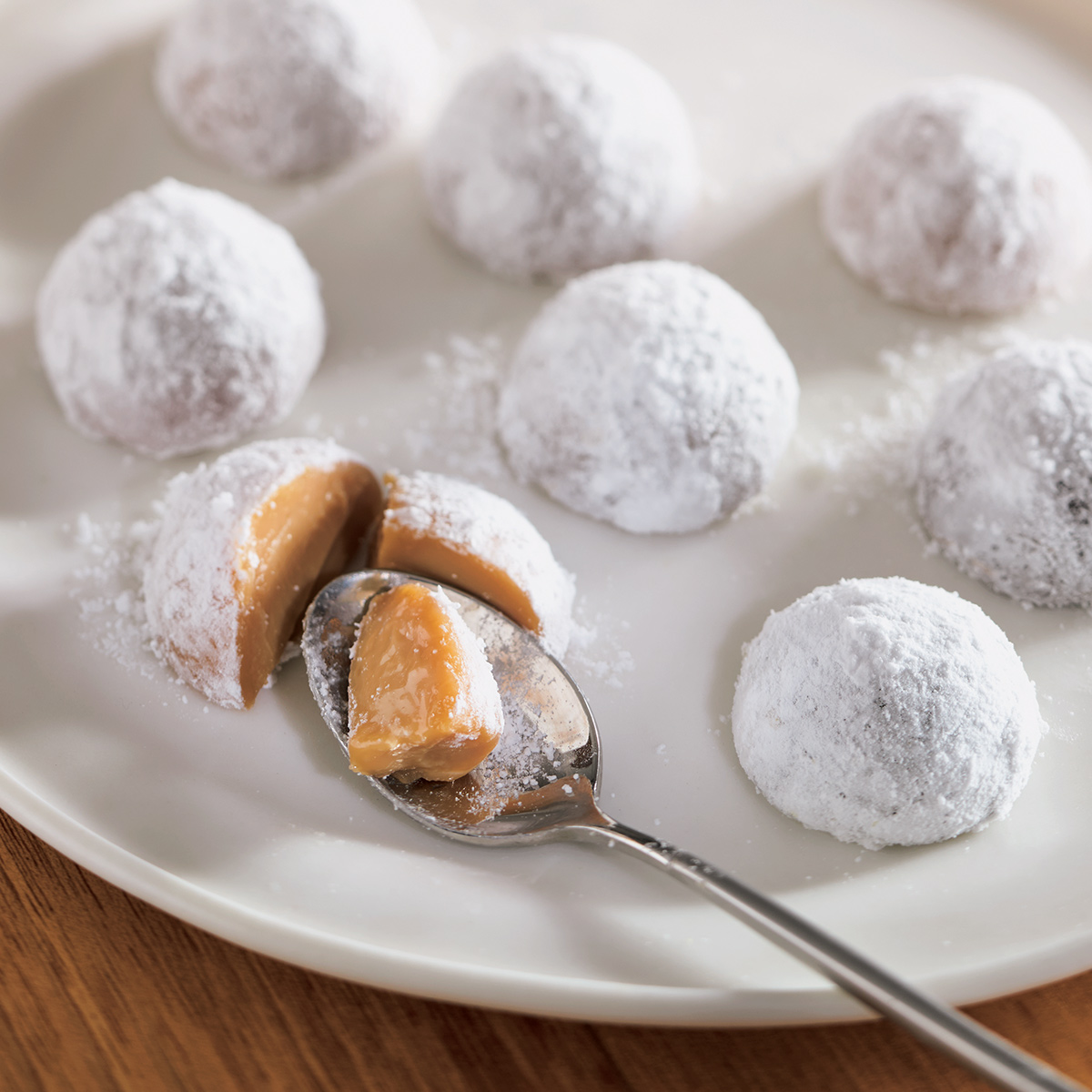 舌の上でとろけるおいしさに、気持ちもほどける。煌めく満月パッケージの中にひと口の月。九州の恵みを閉じ込めた粒キャラメルは少しとろけてからスプーンですくっても格別。
