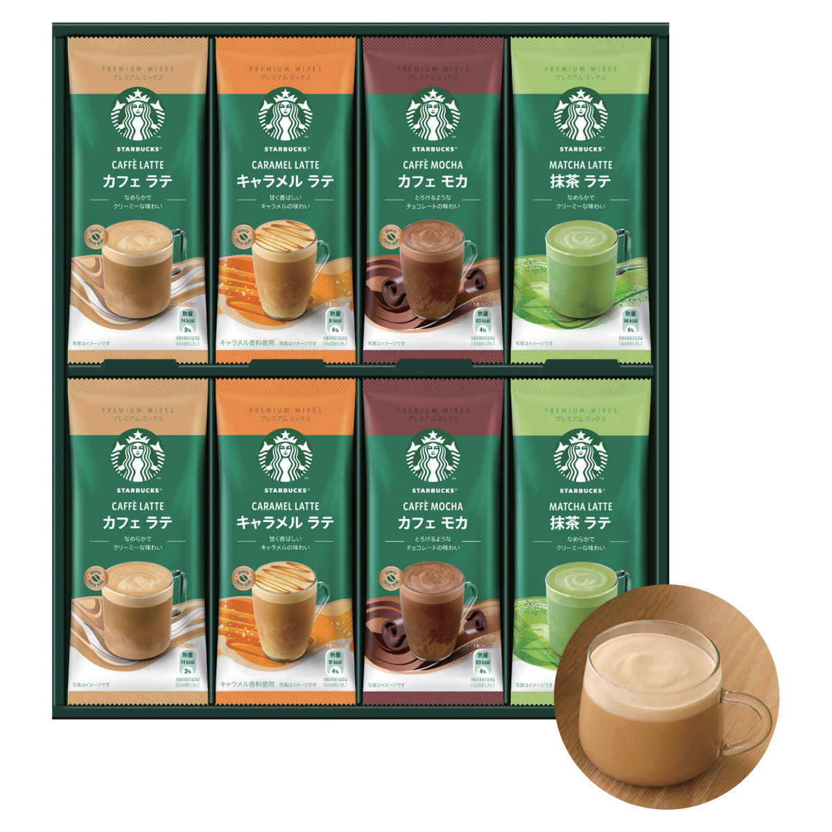 ●内容:カフェ ラテ・キャラメル ラテ・カフェ モカ・抹茶 ラテ 各4