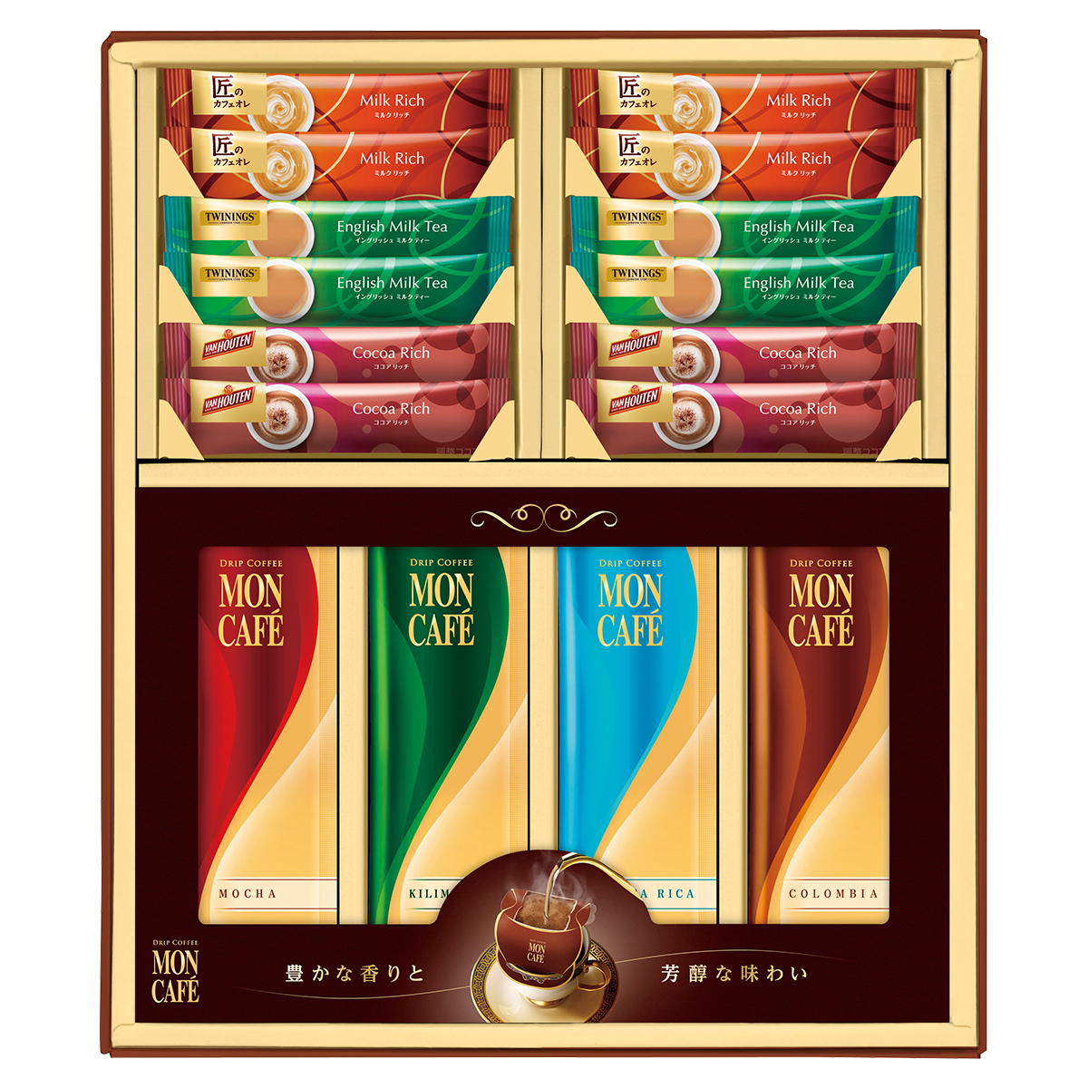 ●内容:匠のカフェオレ(ミルクリッチ×4)、トワイニング(イングリッシュ ミルクティー×4)、バンホーテン(ココアリッチ×4)、モンカフェ(モカブレンド・キリマンジャロブレンド・コスタリカブレンド・コロンビアブレンド 各3)●商品に含まれるアレルギー特定原材料8品目:乳成分>>東急百貨店のお歳暮・ウィンターギフト コーヒー・紅茶 商品一覧>>東急百貨店のお歳暮・ウィンターギフト モンカフェ・トワイニング 商品一覧>>東急百貨店のお歳暮・ウィンターギフト2025ページ◎こちらの商品はクリスマス包装が可能です。クリスマス包装をご希望の場合は、ご注文の際にご用向き一覧から「クリスマス包装(12/22お届け)」「クリスマス包装(12/23お届け)」「クリスマス包装(12/24お届け)」のいずれかをお選びください。(クリスマス包装の承りは12月12日(金)12時までとさせていただきます。)※画像はイメージです。