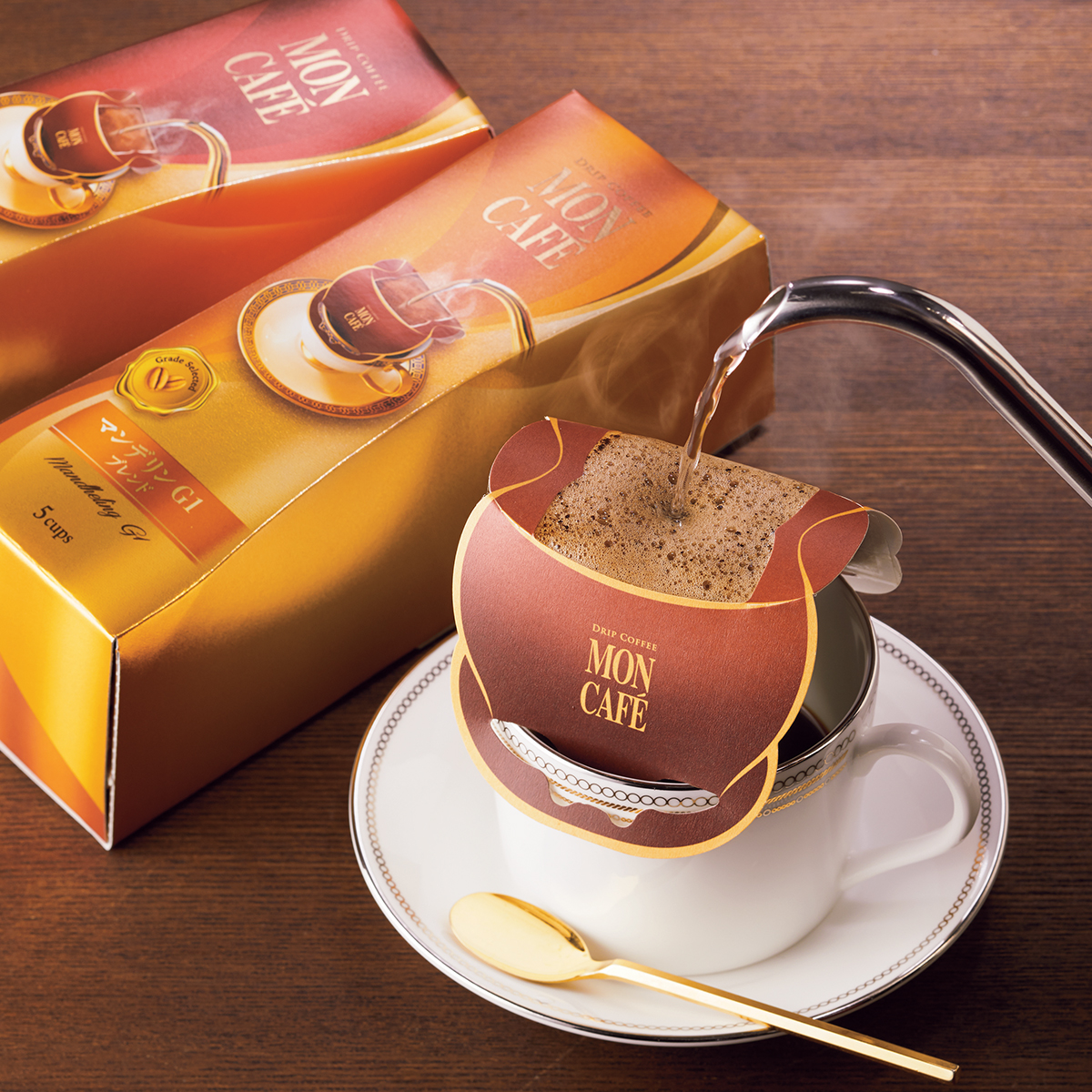 味わいを極めたモンカフェの、多彩なブレンドがお楽しみいただけるギフト。個性豊かなオリジナル ブレンドを豊富にライン アップし、あらゆるシーンに挽きたての美味しさをお届けします。挽きたてのコーヒー豆とフィルターをひとつにして、香りを逃さず一杯分ずつ丁寧にパック。カップにのせて、お湯を注ぐだけで、ドリップ コーヒーならではの芳ばしく、豊かな香りが立ちのぼります。大切なあの方に、優雅なひとときをもたらす贈りものです。
