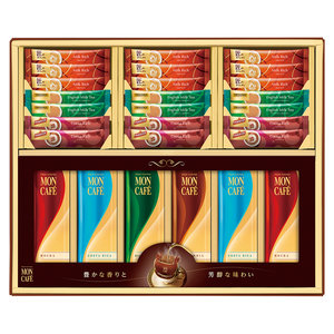 味わいを極めたモンカフェの、多彩なブレンドがお楽しみいただけるギフト。個性豊かなオリジナル ブレンドを豊富にライン アップし、あらゆるシーンに挽きたての美味しさをお届けします。挽きたてのコーヒー豆とフィルターをひとつにして、香りを逃さず一杯分ずつ丁寧にパック。カップにのせて、お湯を注ぐだけで、ドリップ コーヒーならではの芳ばしく、豊かな香りが立ちのぼります。大切なあの方に、優雅なひとときをもたらす贈りものです。