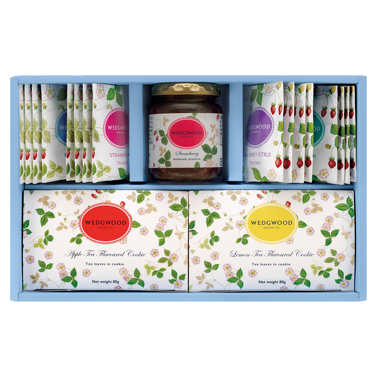 ●内容:ブレックファスト・ストロベリー・アールグレイシトラス・アフタヌーン 各4、ストロベリージャム140g、ティークッキー:アップル・レモン 各80g