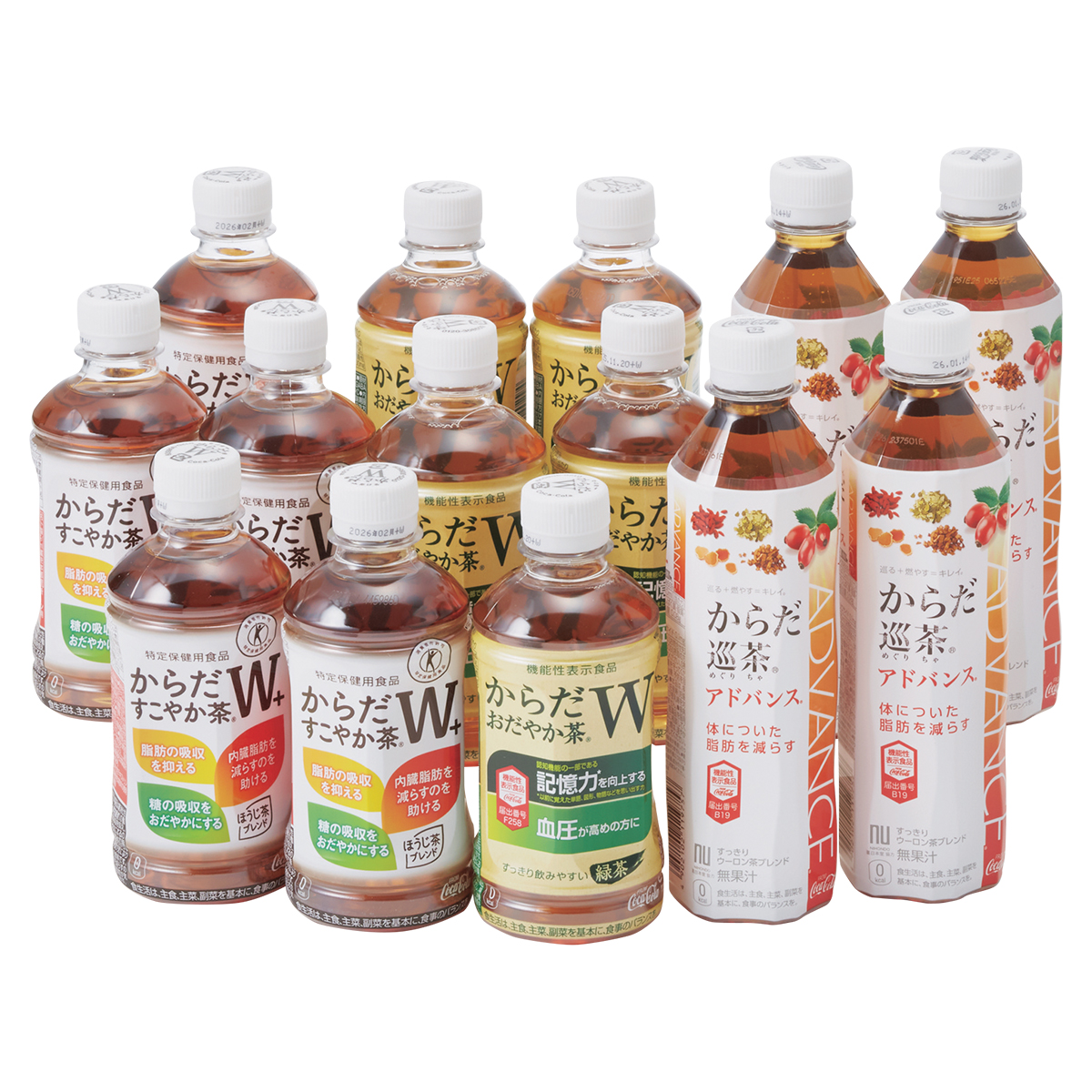 ●内容:からだすこやか茶W+350ml×5、からだおだやか茶W350ml×5、からだ巡茶アドバンス410ml×4