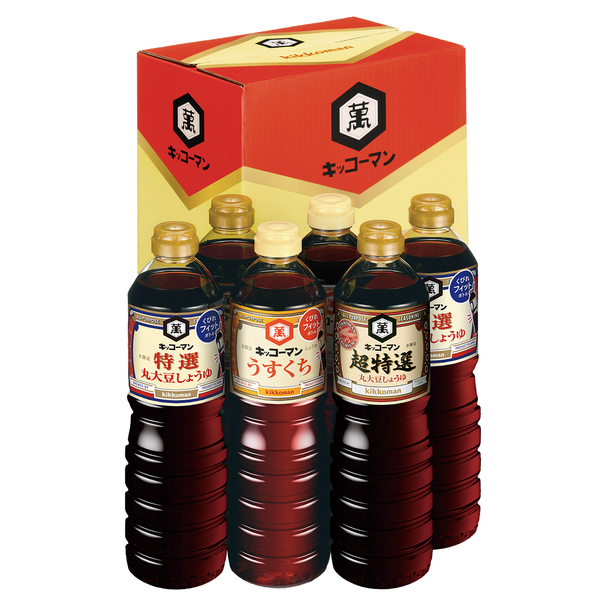 ●内容:特選丸大豆しょうゆ1L×3、うすくちしょうゆ1L×2、超特選丸大豆しょうゆ1L
