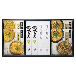 ●内容:讃岐うどん・信州戸隠そば 各80g 各2、あんかけ(かきたま・きのこ各200g) 各2