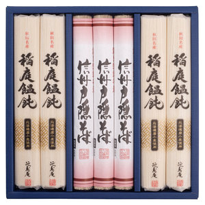 日本三大麺の一つ「稲庭うどん」と、日本一のそばの産地「信州戸隠そば」の詰め合わせ。