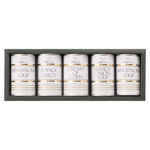 ●内容:ミネストロンスープ×2・コーンのクリームスープ・フレンチオニオン スープ・ポタージュクレシー(人参のスープ) 各160g