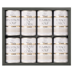 ●内容:コーンのクリームスープ・パンプキンスープ・ミネストロンスープ・ポタージュクレシー(人参のスープ) 各160g×2●商品に含まれるアレルギー特定原材料8品目:卵、乳成分、小麦>>東急百貨店のお歳暮・ウィンターギフト 惣菜・調理品ほか 商品一覧>>東急百貨店のお歳暮・ウィンターギフト 帝国ホテル 商品一覧>>東急百貨店のお歳暮・ウィンターギフト2025ページ◎こちらの商品はクリスマス包装が可能です。クリスマス包装をご希望の場合は、ご注文の際にご用向き一覧から「クリスマス包装(12/22お届け)」「クリスマス包装(12/23お届け)」「クリスマス包装(12/24お届け)」のいずれかをお選びください。(クリスマス包装の承りは12月12日(金)12時までとさせていただきます。)※画像はイメージです。